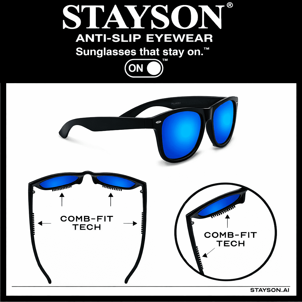 ✅ REAL SOLUTION— STAYSON solves a universal problem for sunglass wearers: no more slipping, dropping, breaking, or forgetting where you left them.